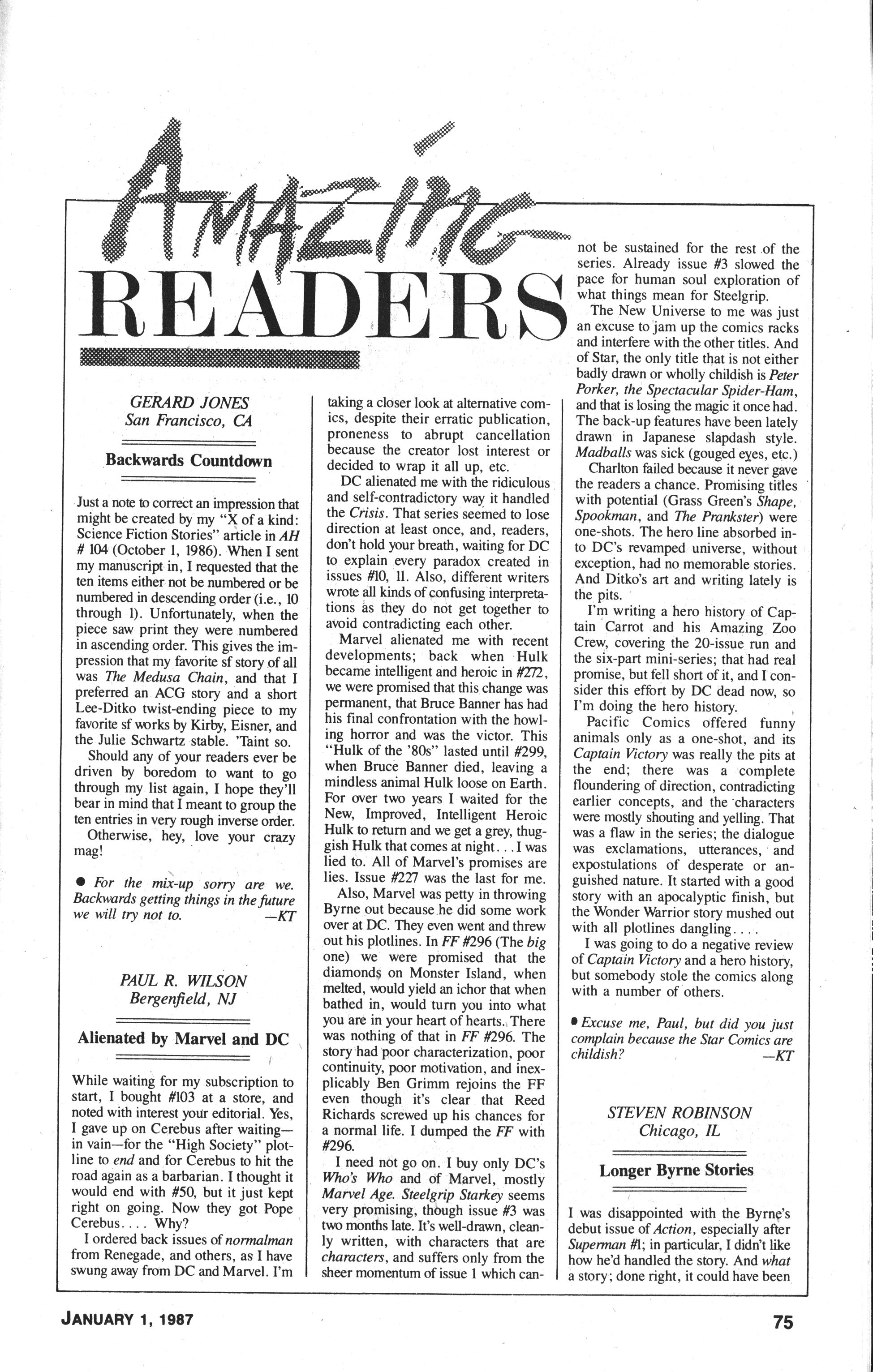 Like I said at the start, this series didn’t get much attention at the time. In Amazing Heroes, I found a mention in the letters column (Amazing Heroes #109, page 75)