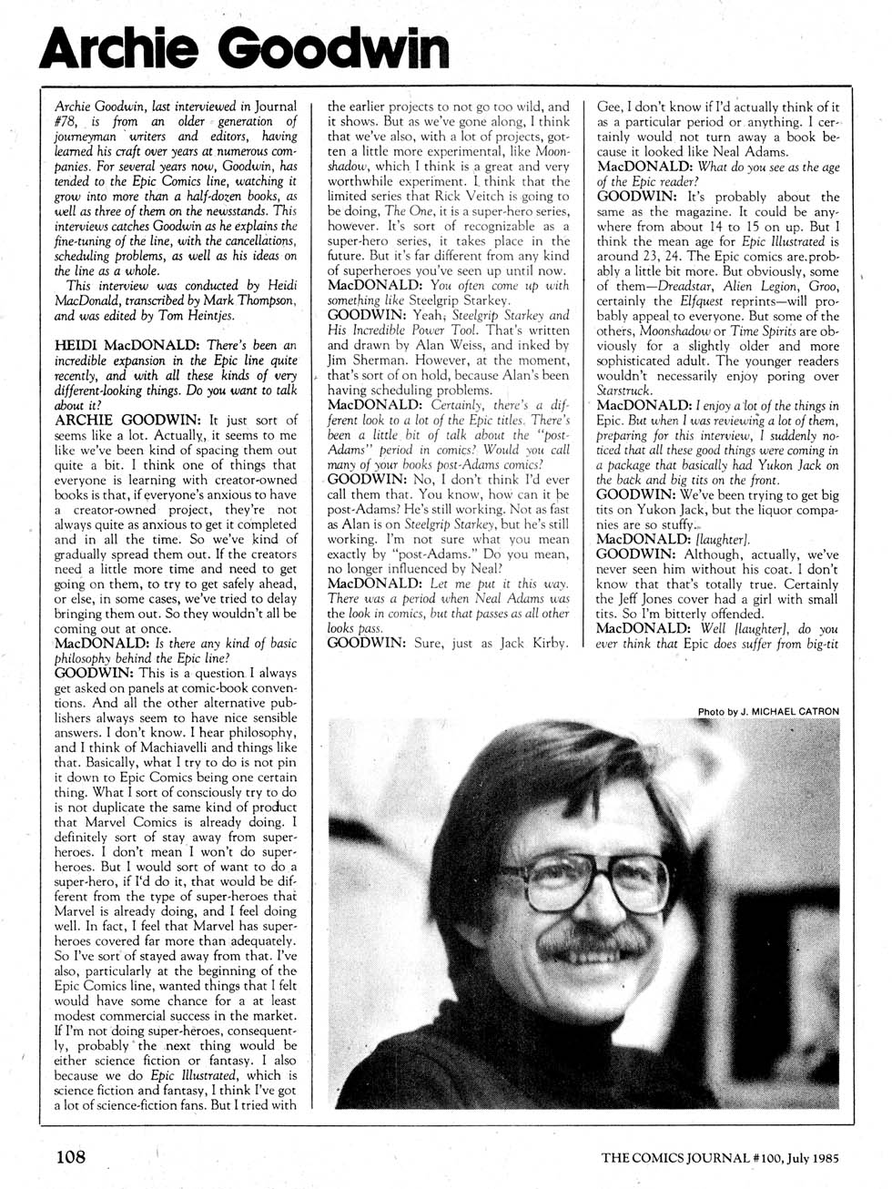 Heidi MacDonald interviews Goodwin in The Comics Journal #100, page 108