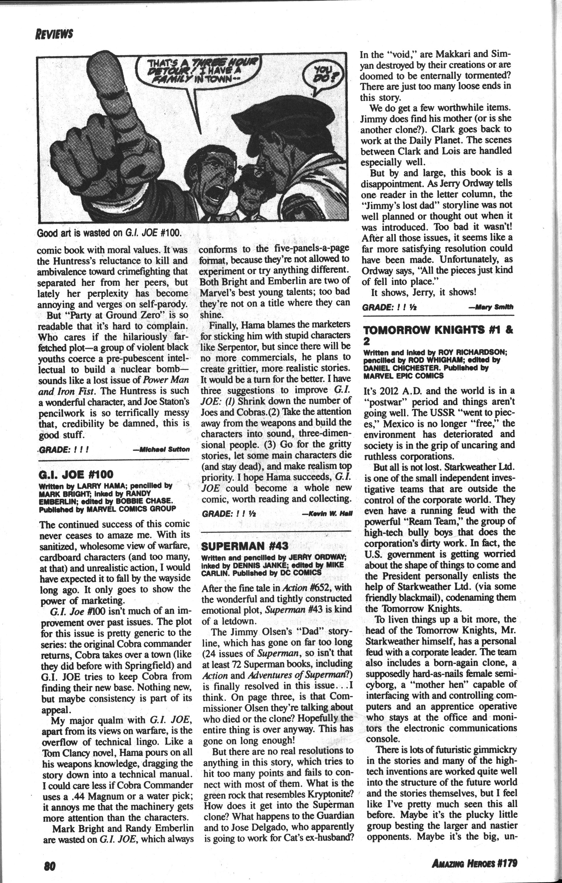 “T M Maple” writes in Amazing Heroes #179, page 80